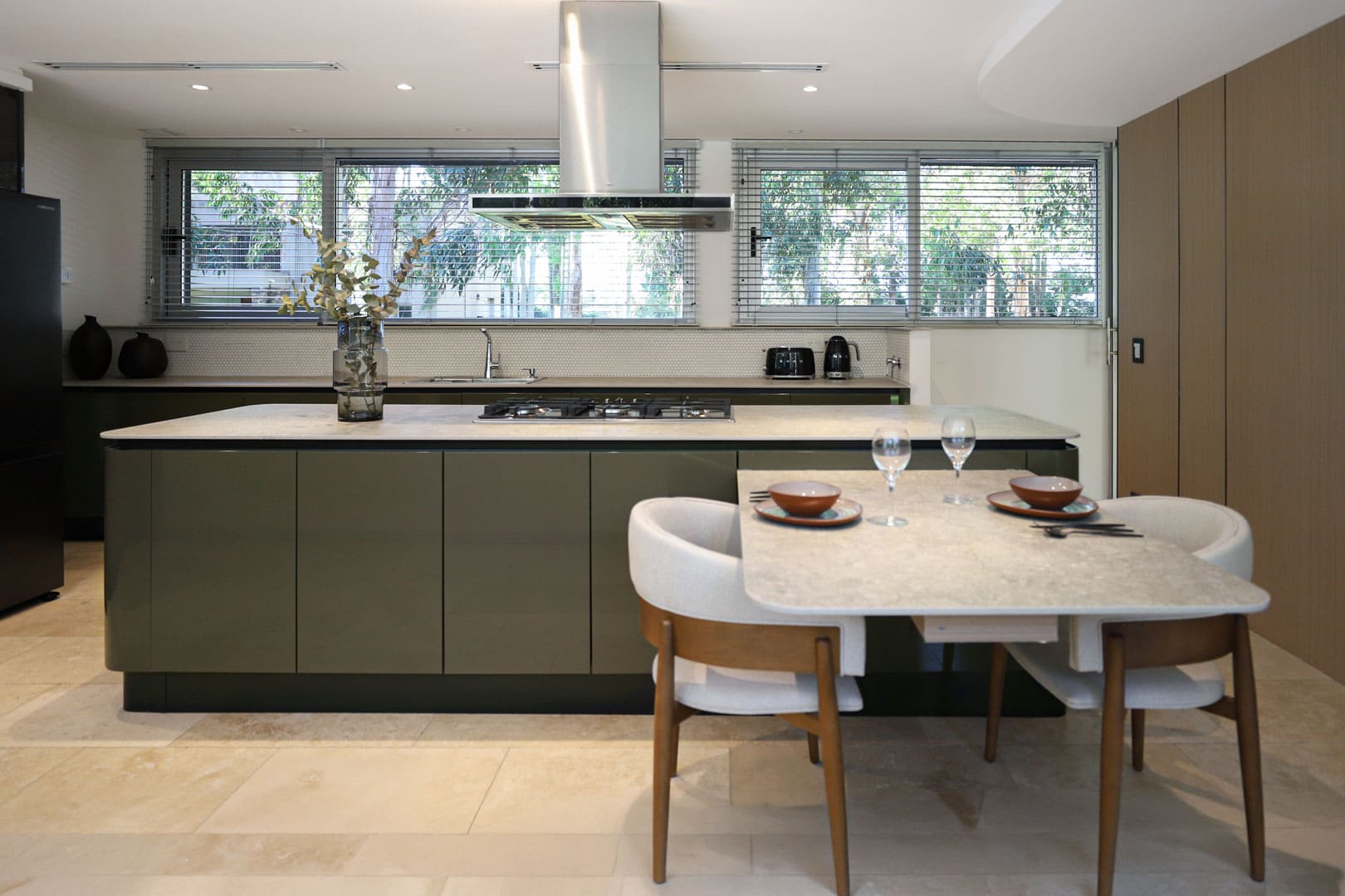 La mesa flotante y la materialidad de la cocina: diseño que convive con la vida real