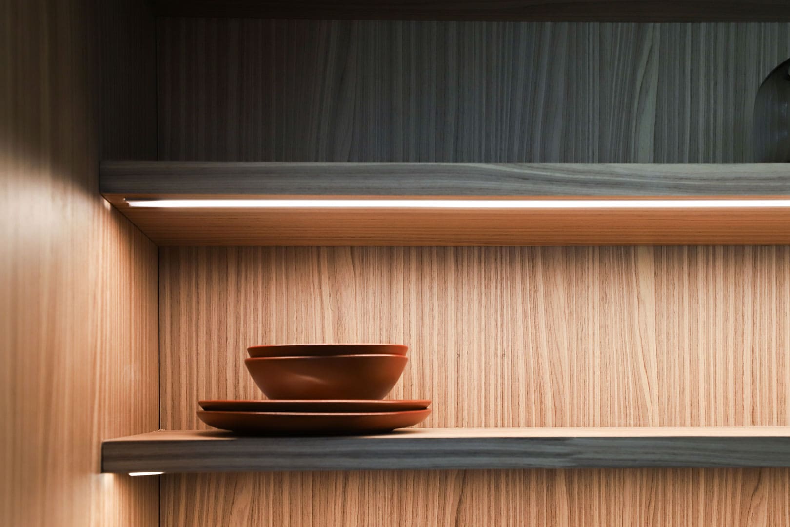 Integra heladera, hornos, vajillero y televisor. Un módulo clave que aporta orden y confort sin romper la continuidad visual.